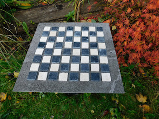 I think it looks really good, with the stone board nicely matching the pieces. I am not planning to keep the pieces out in the garden all the time, but occasionally they'll be allowed out to play. If I can take any interesting photos of the pieces 'in the wild', I'll create another blog post. I've already seen a cat contemplating its opening move.