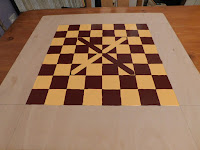 I wanted a simple board, and uhm-ed and ah-ed quite a bit as to how to create the squares. Got ideas and then rejected them again later when I came to the realisation it just didn't quite work. To make a long story short, I finally decided on simple pyrography: burn the lines into the board, using a soldering iron.